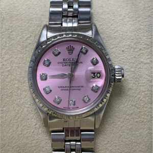 Rolex Lady-Datejust 26MM Aftermarket Ice Pink Dial Yellow Gold Jubilee Bracelet (6517)